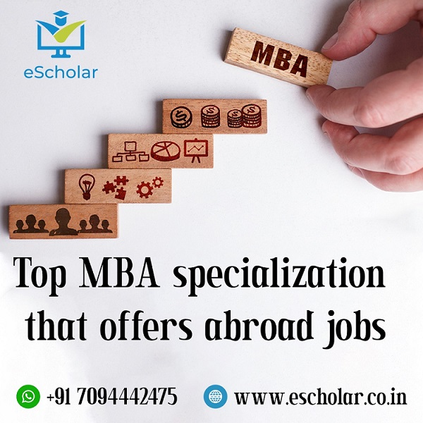 The most sought-after MBA Specializations that offer abroad jobs are MBA in Digital Marketing, MBA in Business Analytics, MBA in Data Analytics, MBA in Entrepreneurship, MBA in Finance, MBA in Strategy, MBA in International Business, MBA in Human Resource Management, MBA in Risk Management, MBA in Operations, MBA in Marketing, MBA in Management, MBA in Information Technology, MBA in Real estate management, MBA in International Business, MBA in Healthcare Management, etc. Having these specializations will help graduates to pursue their higher studies and jobs abroad with high pay.