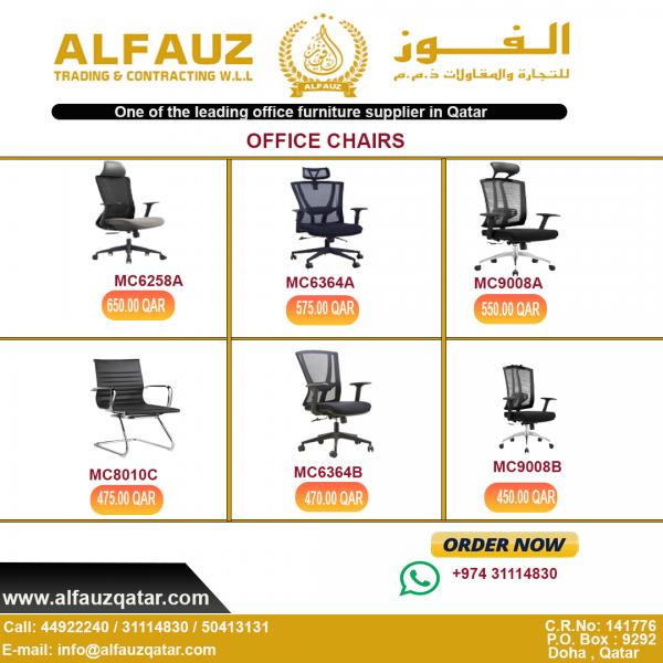Alfauz Furniture is one of the leading office furniture company in Qatar. We supply exc office desk , office chairs, cabinets, camp furniture .