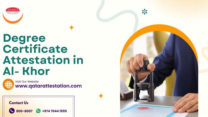 At Qatar Attestation, you can get the Degree Certificate Attestation in Al Khor. Visit our website for more details at https://www.qatarattestation.com/